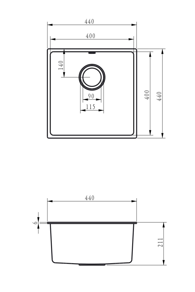Comite | 1 Bowl Undermount Sink with Strainer Waste | Gloss Black